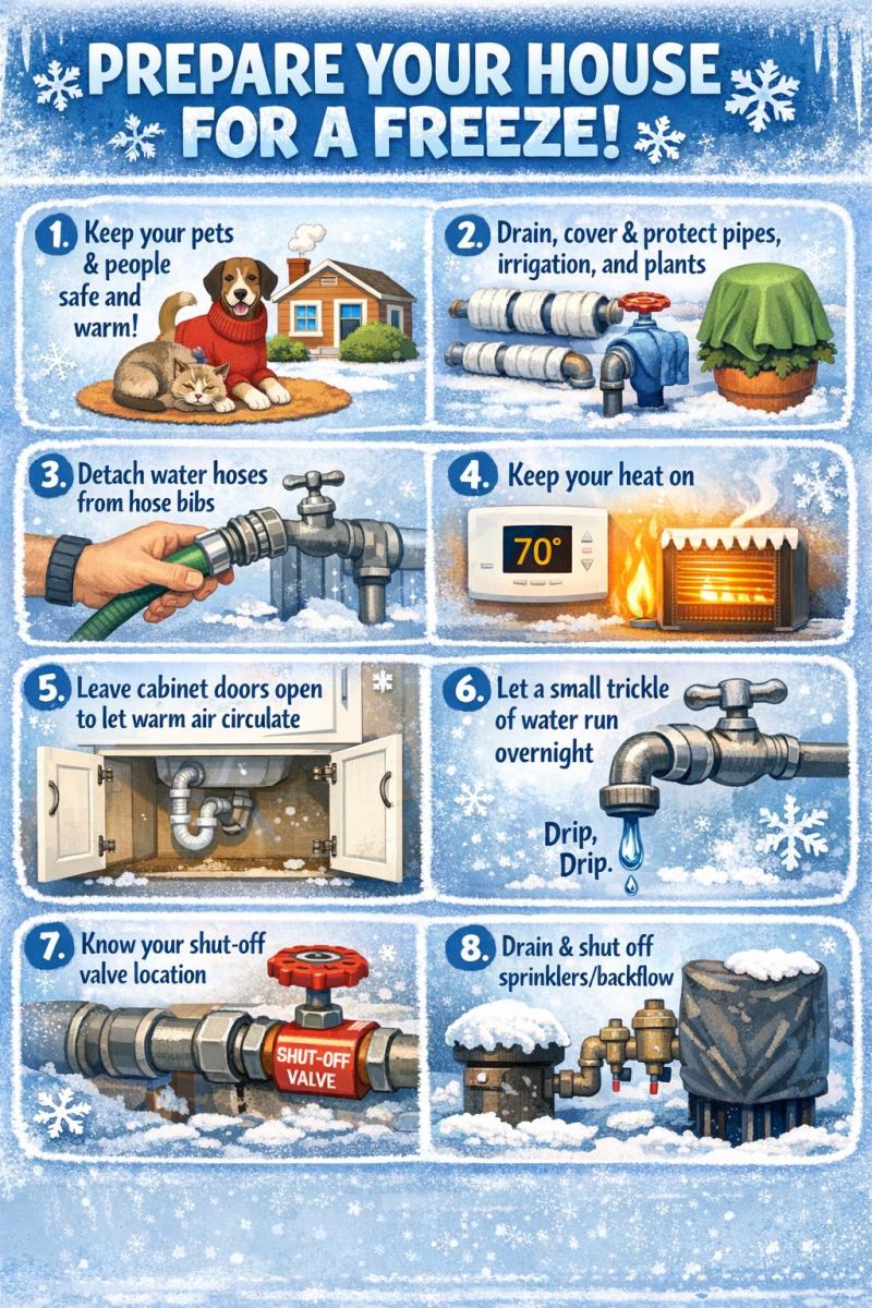 Everyone should by now be aware of the potential severe winter weather coming this weekend. This is just another reminder to prepare your home before the freezing temperatures arrive. Also be sure to drip your faucets anytime the temperatures go below 32 degrees. It is looking like we will not go above freezing all day Sunday. Please continue to monitor the weather and do what you can to prevent your pipes from freezing. If you do have a pipe burst and cannot locate your shut off valve, please call our on call team and they will come out and turn off your meter. 409-745-4882.